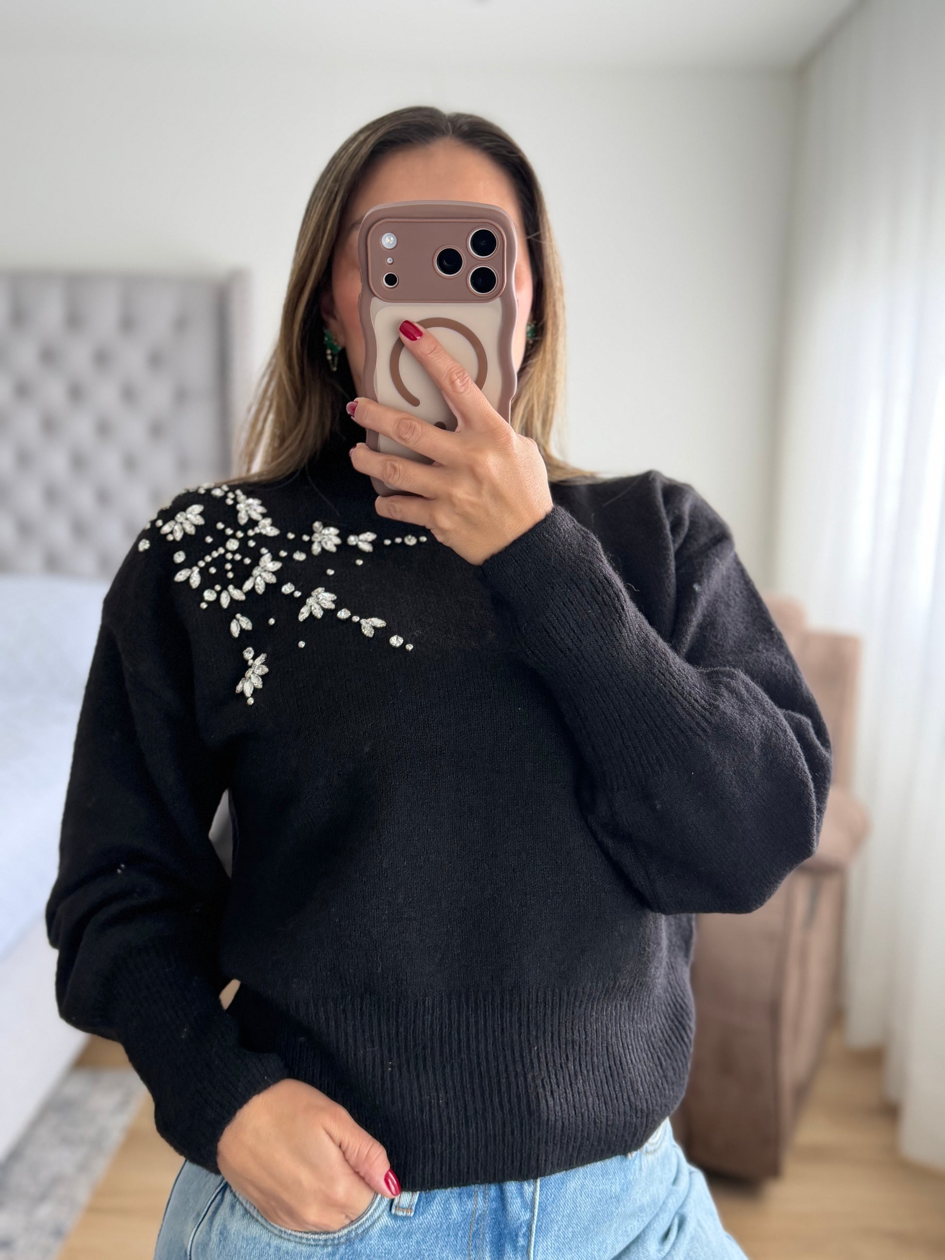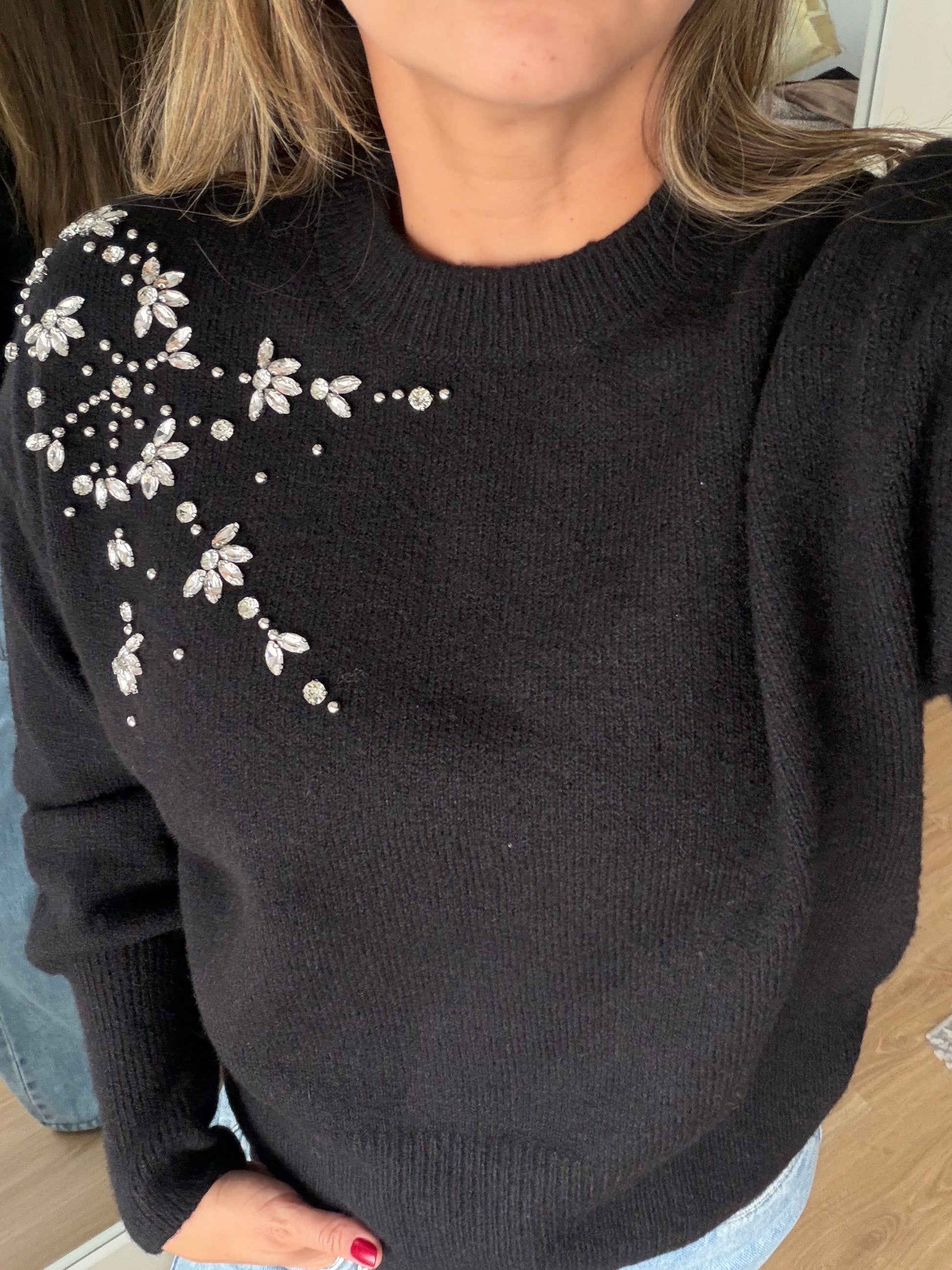 Buzo Hilo Aplique Piedras Negro