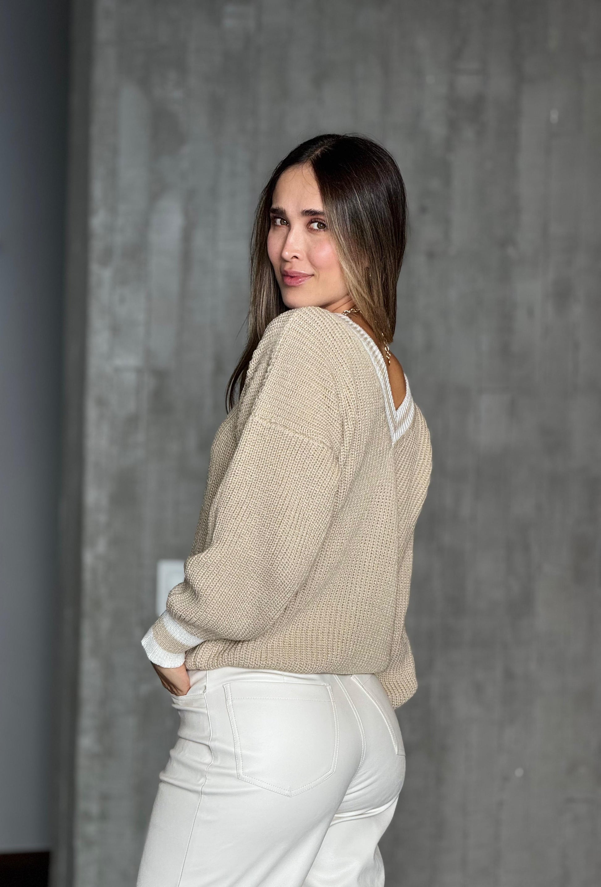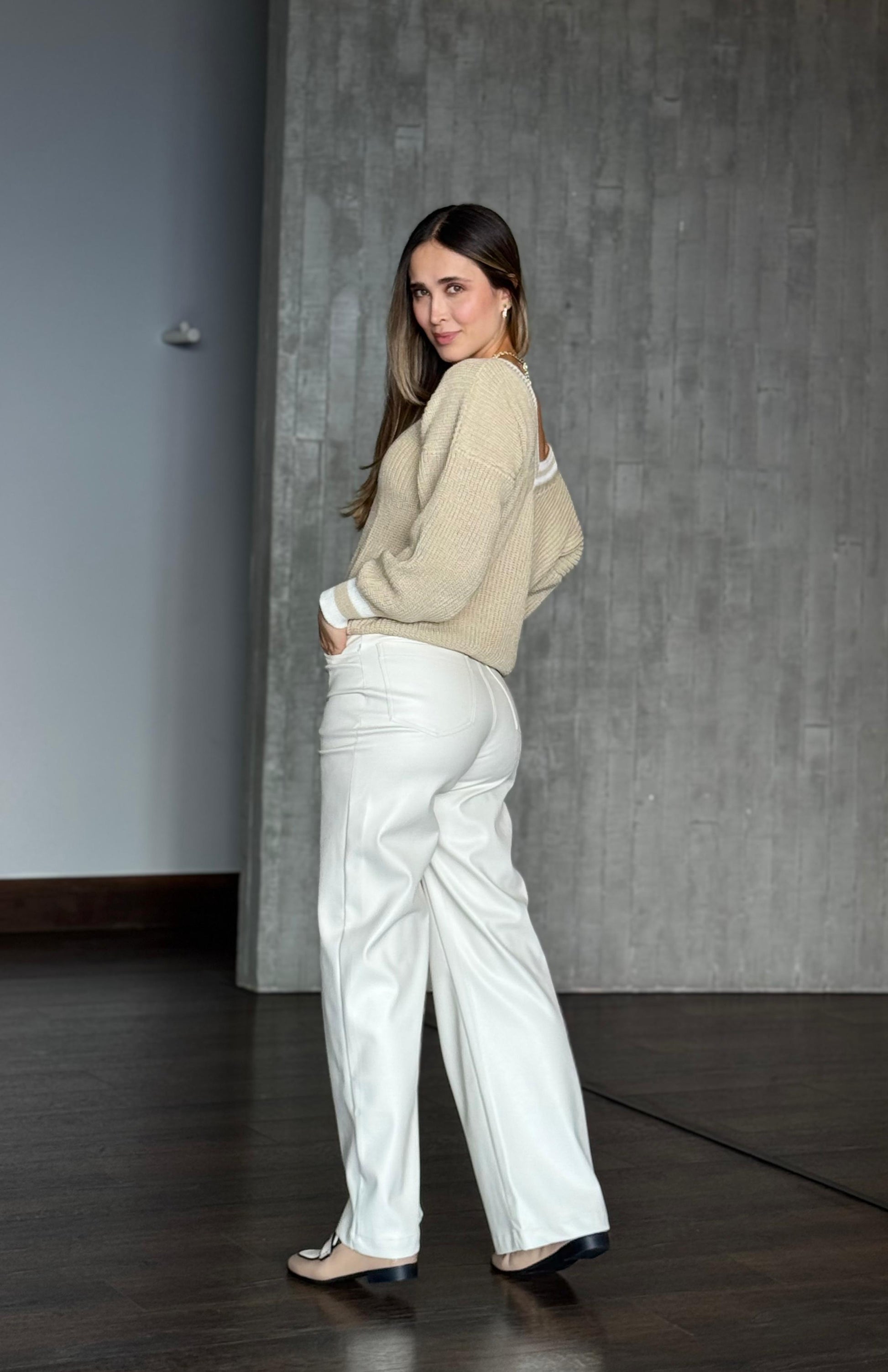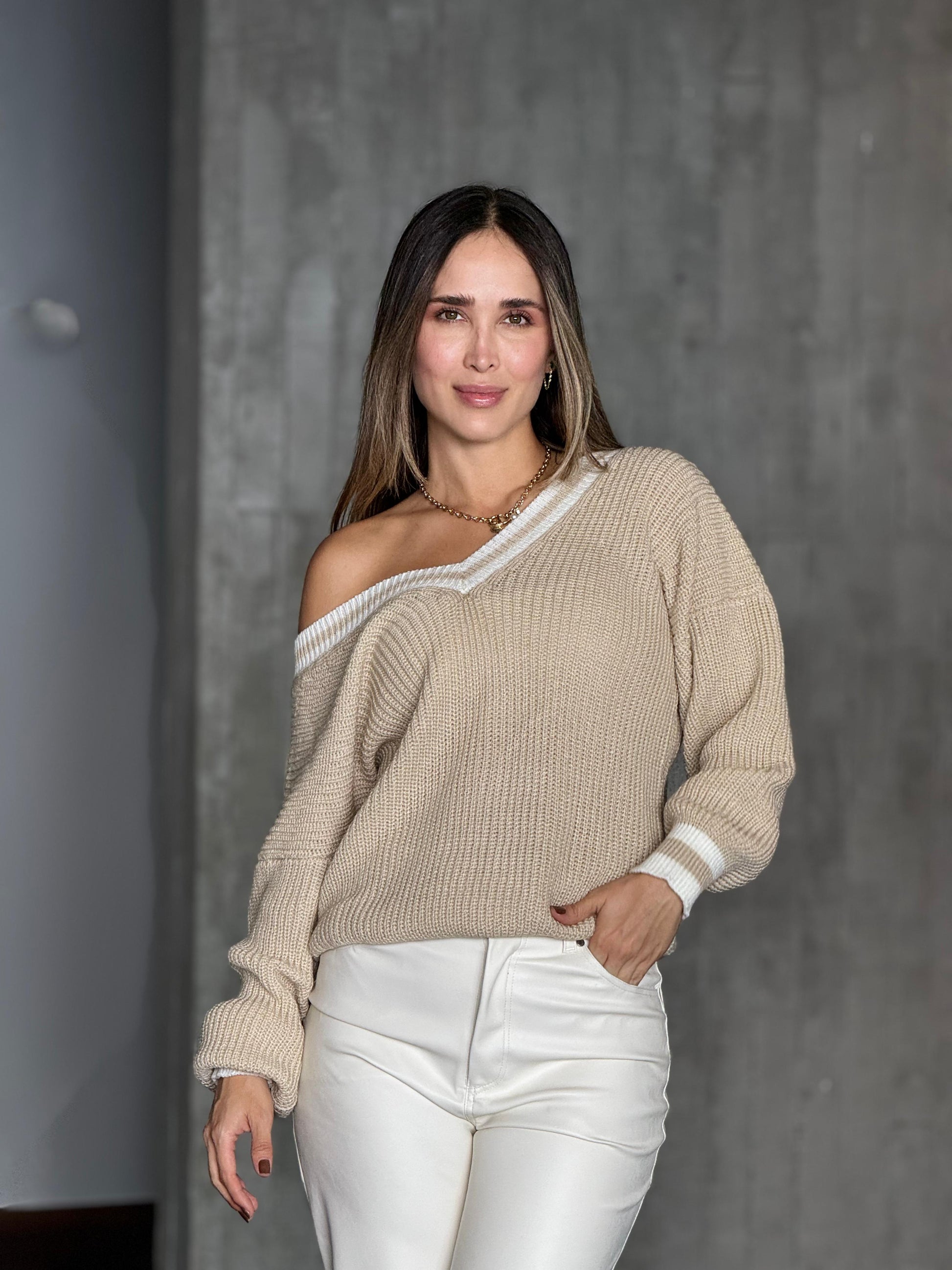 Este Buzo Hilo Borde Cuello Beige es la opción perfecta para un look cómodo y elegante. Confeccionado en hilo, brinda una sensación suave y ligera en tu piel. El diseño en su cuello le da un toque de distinción. ¡Haz que tu estilo se destaque con este buzo!