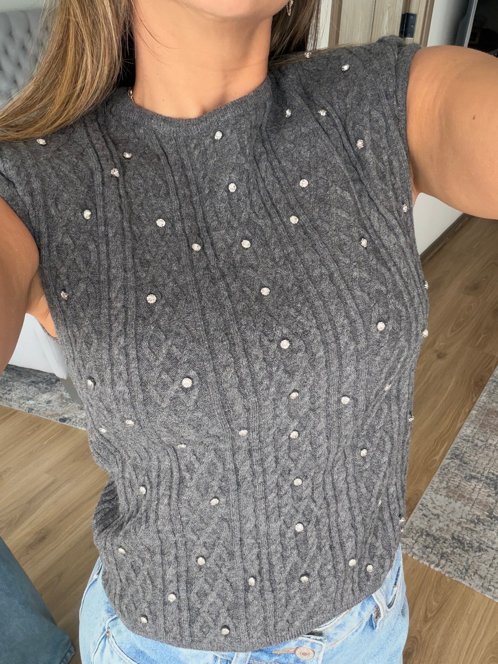 Buzo Hilo Hombrera Piedras Gris