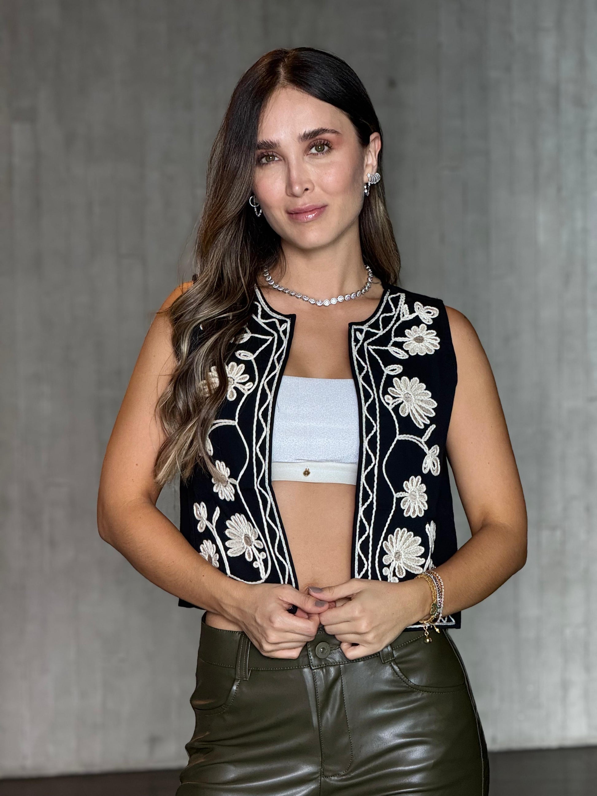 Este hermoso Chaleco Bordado Flores es la elección perfecta para agregar un toque de moda a cualquier atuendo. Su diseño único y versátil lo hace ideal para cualquier ocasión, ya sea informal o elegante. Con su bordado delicado de flores en tonos beige y negro, este chaleco es una verdadera obra de arte. ¡Haz una declaración de estilo con este hermoso chaleco!