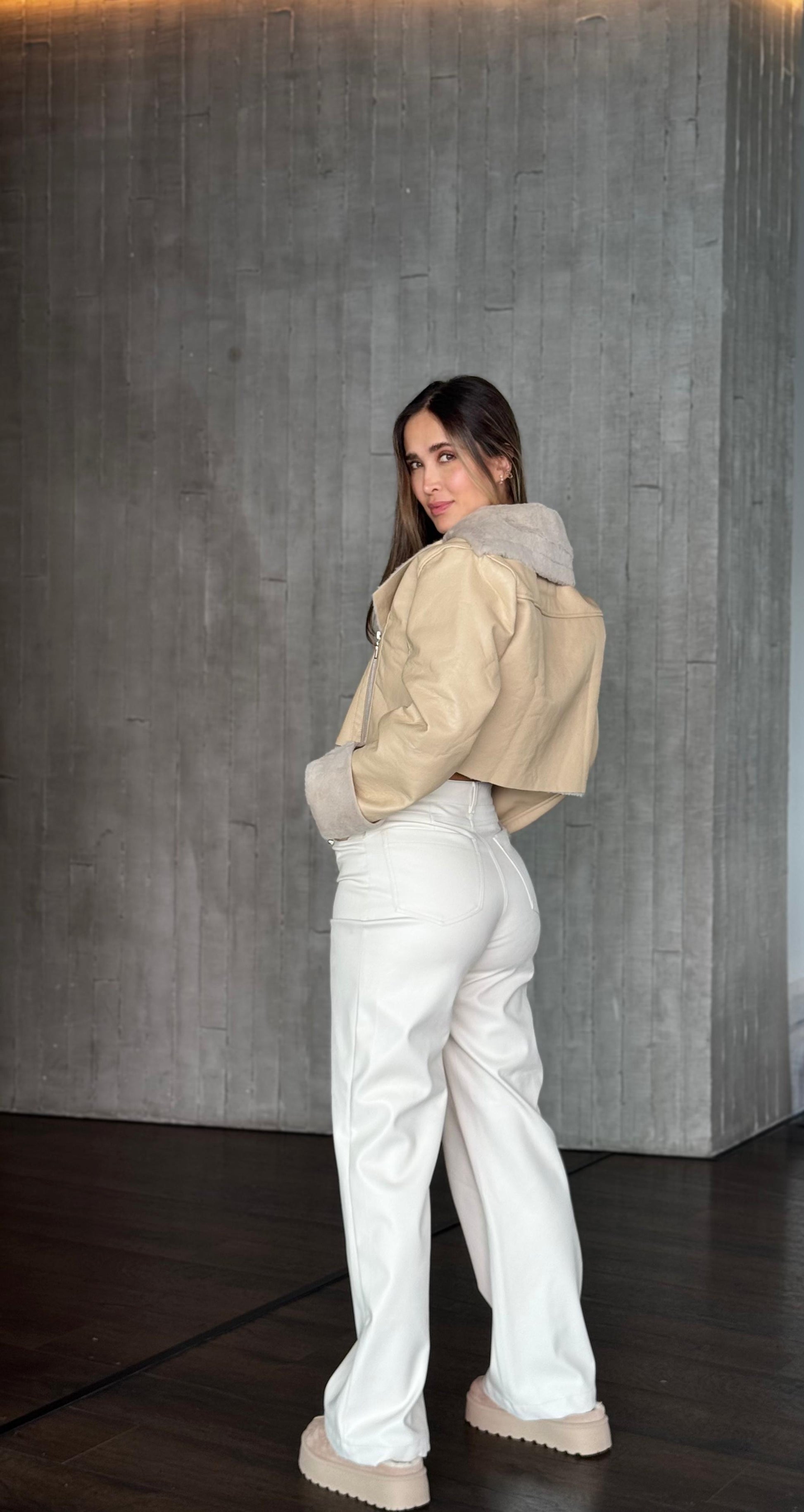 Esta chaqueta de tendencia atemporal es un básico que no puede faltar en tu guardarropa. Con su clásico diseño de aviador en color beige, te mantendrá abrigado y elegante en cualquier ocasión. ¡Haz una declaración de estilo con esta chaqueta imprescindible!