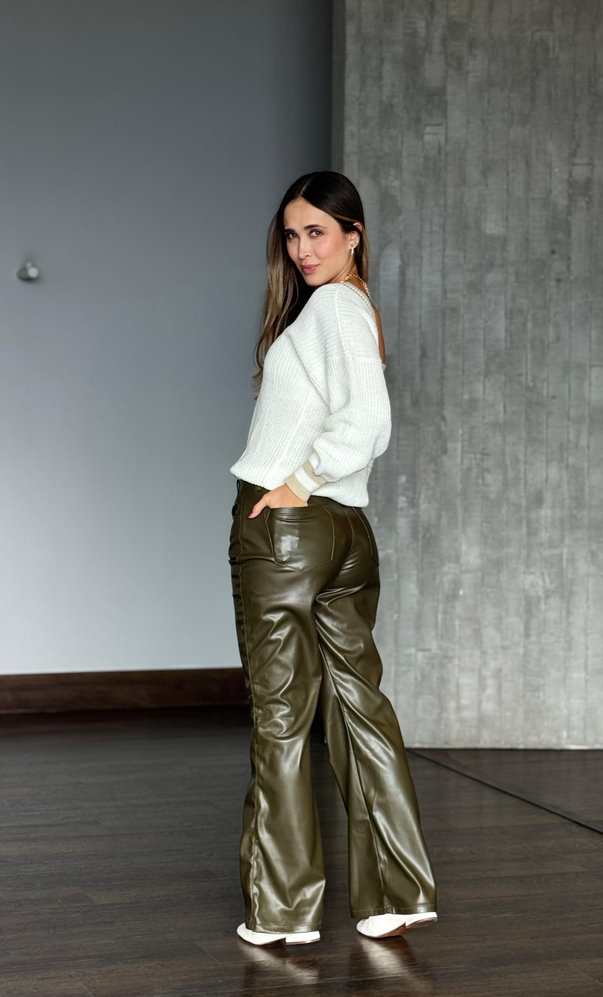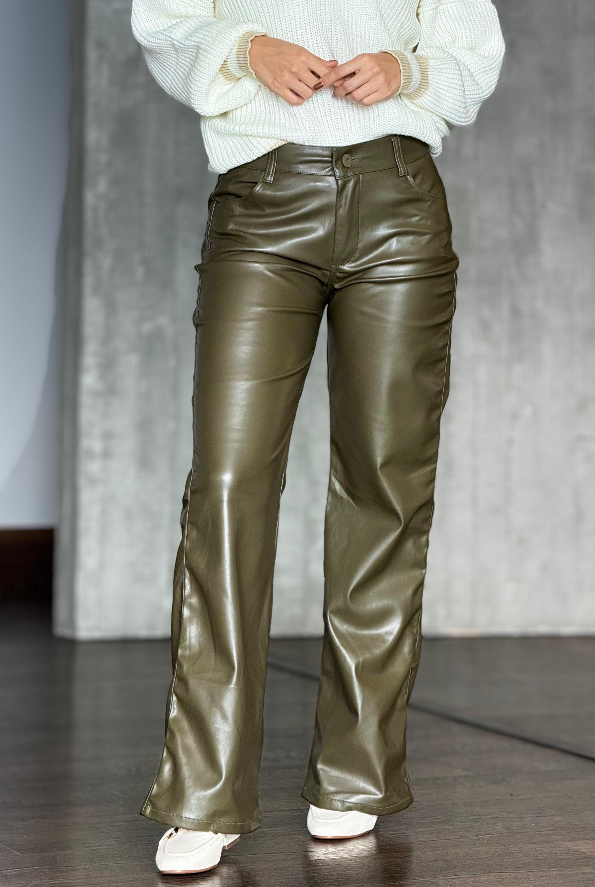 Este pantalón de efecto cuero verde es una tendencia de moda imprescindible. Con su apariencia brillante y moderna, este pantalón es perfecto para añadir un toque de estilo a cualquier atuendo. Hecho con materiales de alta calidad, proporciona comodidad y durabilidad, lo que lo convierte en una elección inteligente para cualquier persona que busque un look sofisticado y único.