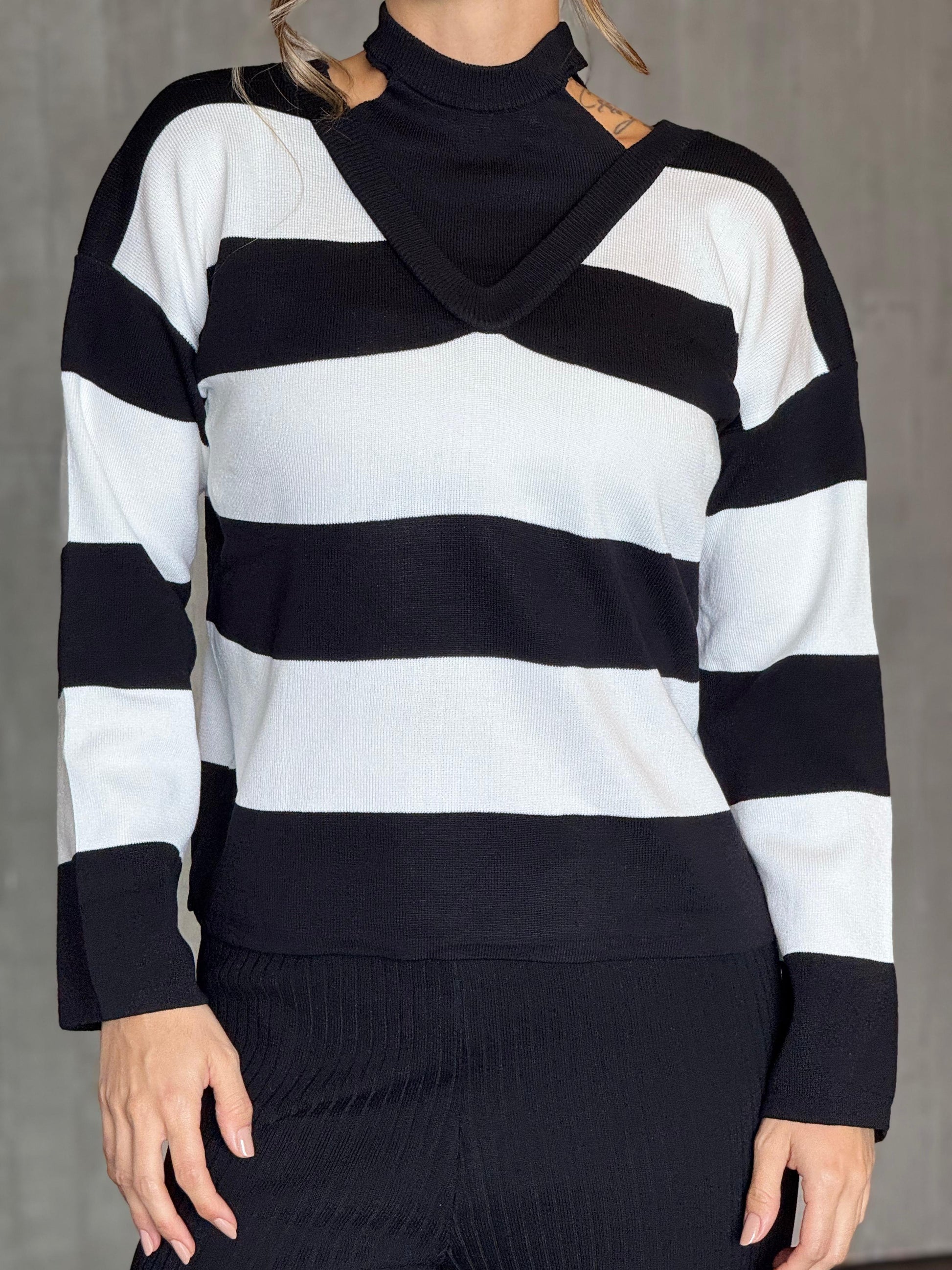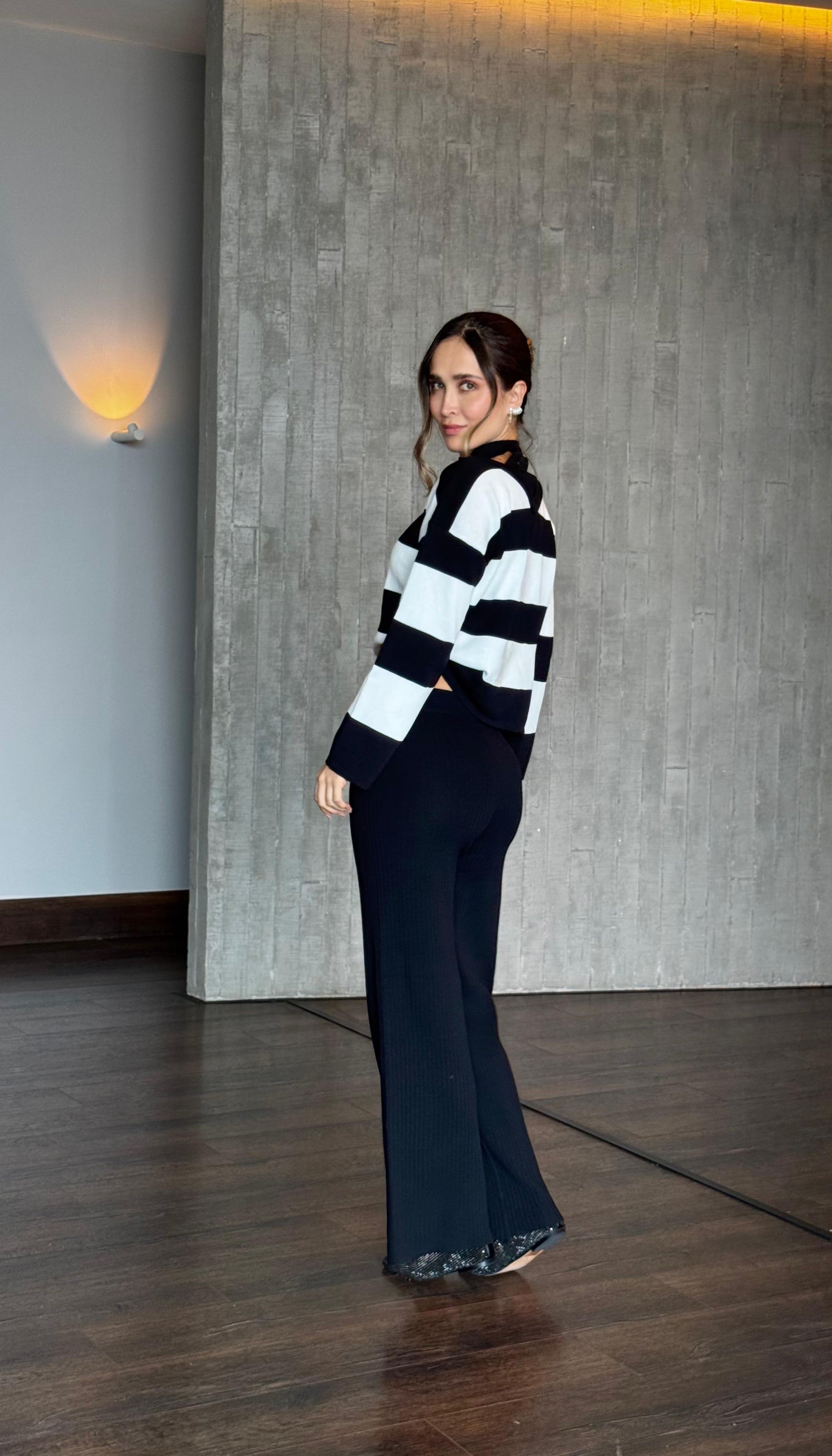 Este conjunto de hilo es una combinación perfecta de elegancia y comodidad. Con un diseño clásico de rayas en color negro, este set es ideal para cualquier ocasión. La mezcla de hilo lo hace suave al tacto y resistente al uso, proporcionando una experiencia de uso cómoda y duradera. ¡Un must-have en tu guardarropa!